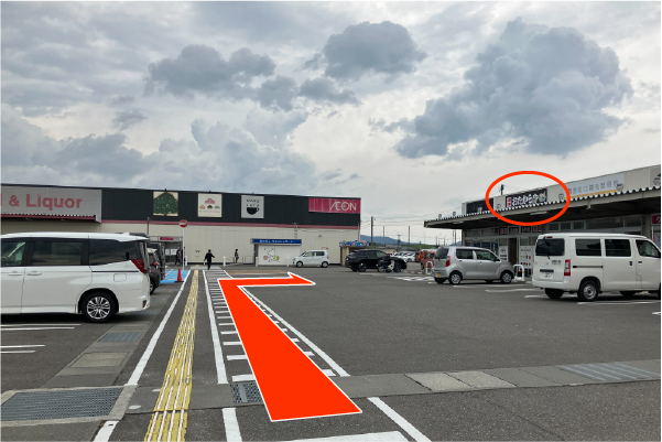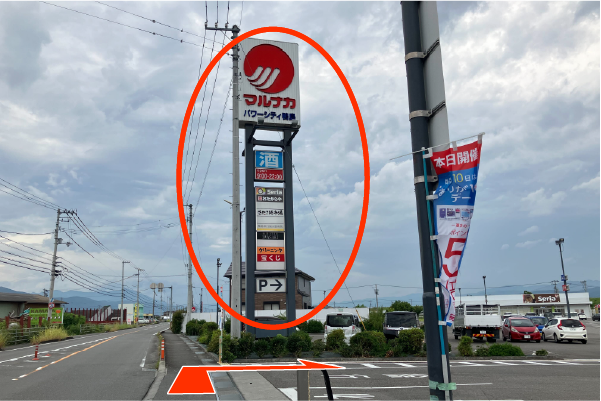 マルナカパワーシティ鴨島店を正面に歩いて行くと、右手におたからやの看板が見えるのでそこで右折してください。 -