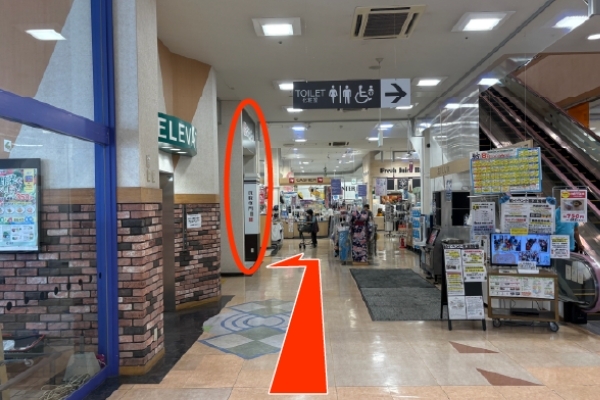 マルナカ脇町店内1階 正面入り口から入ってすぐ左折 衣料品売り場前
