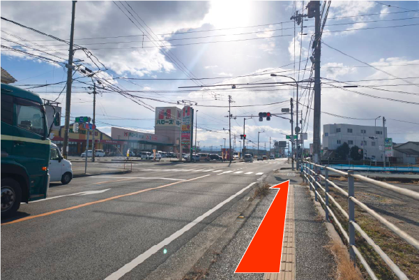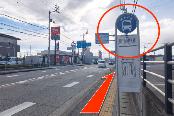 鳴門渦潮高校バス停で降り、すき家のを左手に歩道を進みます。 -